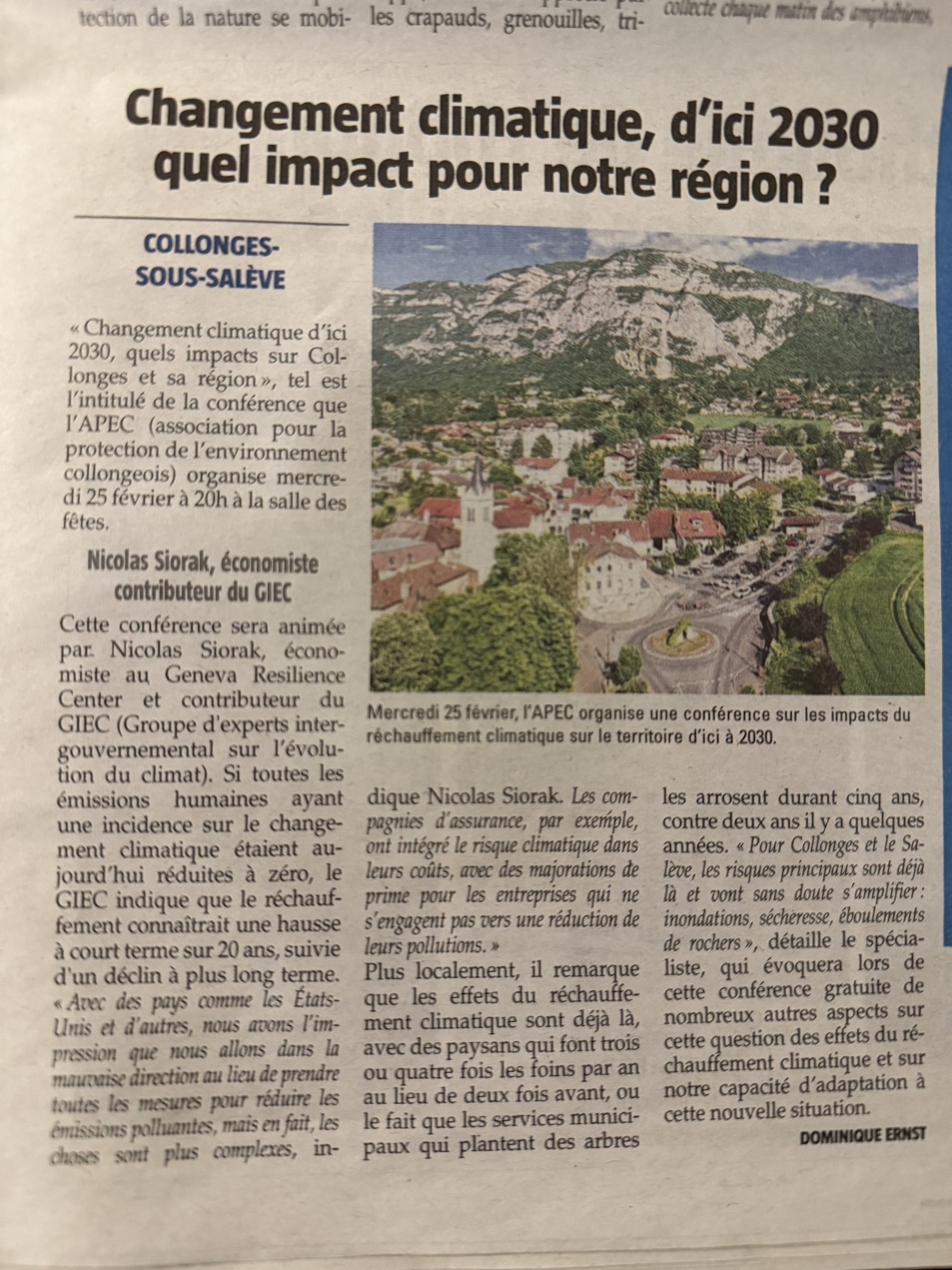 L’APEC : l’Association pour la Protection de l’Environnement Collongeois est active dans tous les domaines concernant la protection et la qualité de vie, l’environnement, la défense et la mise en valeur de tous les patrimoines naturels et culturels de Collonges sous Salève et environs